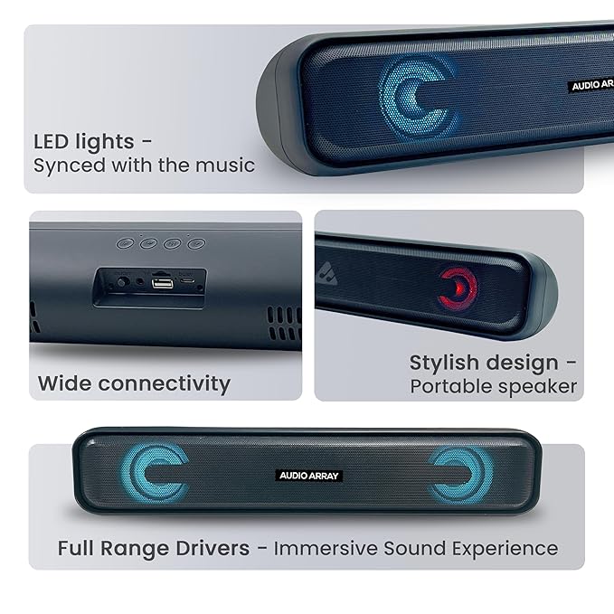 - POWER – Audio Array SB-01 is a powerful soundbar is equipped with 25W RMS Stereo Sound that amplifies your listening experience.